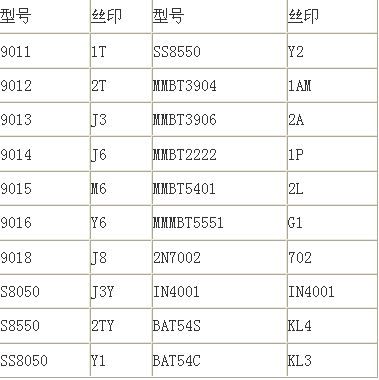 系列:8550、8050、9012、3904、3905、9012、9013、9014、9015、5819……